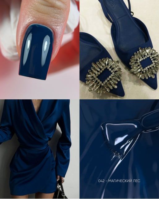 Приглушённый, бархатный, благородный — этот синий словно сошёл с осенних подиумов. В нём нет показной яркости, зато есть утончённость и внутреннее свечение, будто ткань дорогого кашемира под вечерним светом. Он универсален: одинаково красиво выглядит и на коротких, и на длинных ногтях, придавая рукам аристократичность и собранность. Его текстура средне-плотная и кремовая, как мягкое сливочное масло — ложится идеально ровно, распределяется без усилий, самовыравнивается и безупречно просыхает в один слой, оставляя безукоризненно гладкое, ровное покрытие.