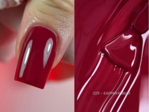 По плотности и консистенции Карминовый идеален: тягучий, ровный, пластичный, он наносится легко, распределяется без полос и наплывов, прекрасно просыхает и полностью перекрывает ногтевую пластину в один слой.