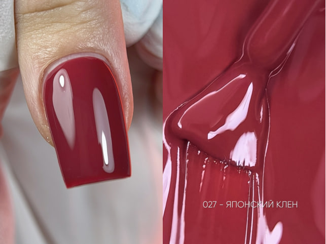 По консистенции Японский клён средне-плотный и податливый, распределяется легко и равномерно, не образуя наплывов у кутикулы, и прекрасно перекрывает ногтевую пластину уже в один слой.