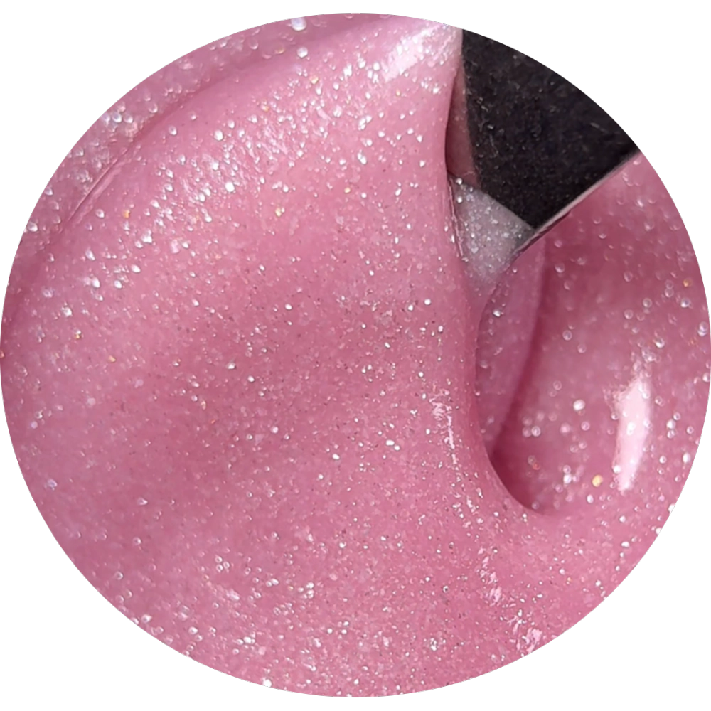 Жесткий камуфлирующий гель холодного темно-розового оттенка с мелким серебряным шиммером. Легко выравнивается, имеет комфортную и приятную для работы консистенцию, не растекается и не уплывает, хорошо держит форму.